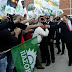 Ένας από τους υποστηρικτές του ΠΑΣΟΚ, φιλά το χέρι του προέδρου κυρίου Βενιζέλου.. Για παπά σίγουρα δεν τον πέρασε..