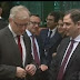 «Κουμπωμένος» τον άκουγε στην κατ’ιδίαν συνομιλία του ο Επίτροπος Όλι Ρεν, ενώ πολύ σκεπτικός και αγέλαστος παρέμενε και ο Ζαν Κλοντ Γιούνκερ. Μια τυπική χειραψία και λίγα λόγια αντάλλαξε μόνο με τους γνωστούς από την παρουσία τους στην Αθήνς ως εκπροσώπους της Τρόικα κυρίους Σερβάας Ντερόουζ και Ματίας Μορς, οι οποίοι μετείχαν επίσης στην συνεδρίαση του eurogroup ως αρμόδια για την πορεία της χώρας μας στελέχη της Κομισιόν.