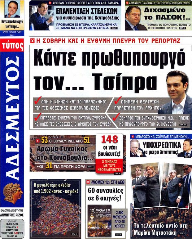 Νέα / Εφημερίδες , Πρωτοσέλιδα Εφημερίδων / Εφημερίδες Πρωτοσέλιδα