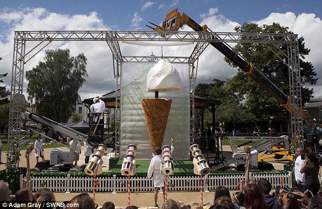 Πρόκειται για το μεγαλύτερο παγωτό του κόσμου που έχει ύψος 4 μέτρα και ζυγίζει έναν τόνο. Για να παγώσει μάλιστα χρειάστηκε έναν ολόκληρο μήνα!