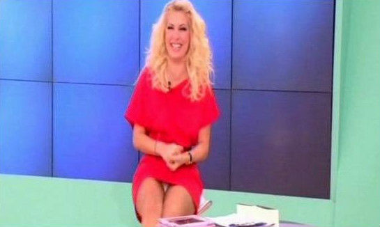 Η παρουσιάστρια καθόταν σταυροπόδι, ωστόσο η στάση αυτή δεν την βόλευε καθόλου. Μια κίνησή της, στην προσπάθειά της να αλλάξει θέση, ήταν αρκετή για να φανεί το λευκό εσώρουχό της...