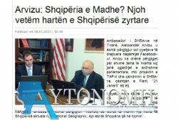 Κληθείς να απαντήσει για το κατά πόσο είναι εφικτή η επανένωση των «εθνικών εδαφών» της Αλβανίας ούτως ώστε να σχηματιστεί η «Φυσική Αλβανία», ο αμερικανός πρεσβευτής έδωσε ξεκάθαρη απάντηση: «Νομίζω πως πρέπει να πάρετε έναν πρόσφατο χάρτη της Αλβανίας από το National Geographic. Αυτή είναι η Αλβανία που εμείς αναγνωρίζουμε», δήλωσε χαρακτηριστικά ο Αρβιζού προκαλώντας απογοήτευση στους Αλβανούς!