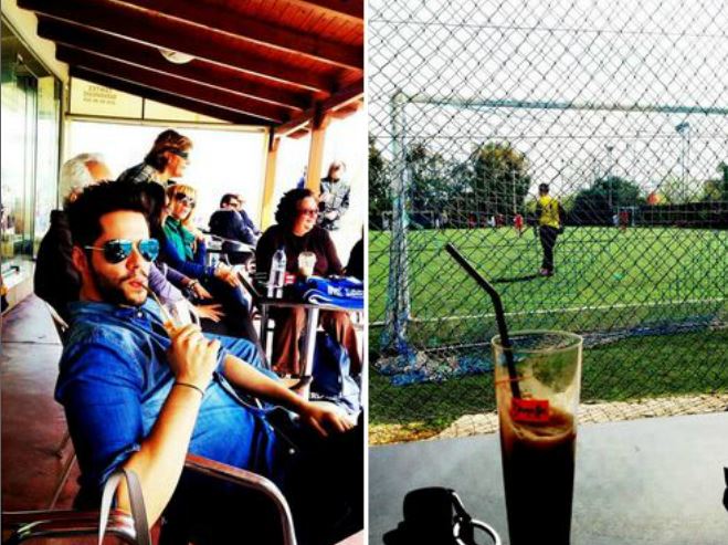 Έτσι σήμερα πρωί πρωί, ετοιμάστηκε και πήγε να παρακολουθήσει τον αγώνα των μικρών, πίνοντας όμως και ένα καφεδάκι για να καταφέρει να κρατηθεί ξύπνιος...