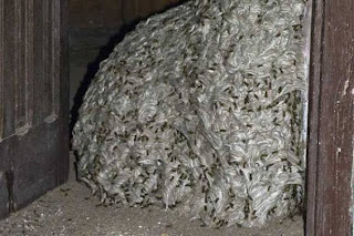 Μια πελώρια σφηκοφωλιά μήκους 6 μέτρων και πλάτους 3 μέτρων βρισκόταν σ' ένα εγκαταλελειμμένο σπίτι. Το περίεργο βουητό οδήγησε τους κατοίκους να ειδοποιήσουν την αστυνομία.