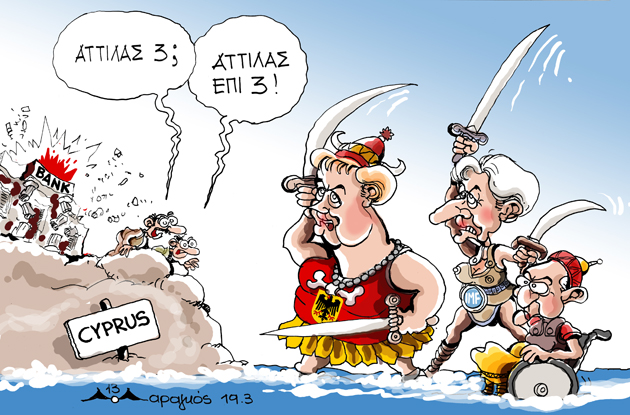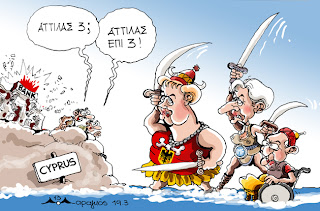 «Καθώς φθίνουν οι ελπίδες για ενεργειακό κέντρο, κλήση από την ΕΕ για τουρκική λύση». Το σοκ είναι τρομερό: «Κλήση από την ΕΕ για τουρκική λύση»! Δεν έχει σημασία πόσο ακριβές είναι αυτό, το ουσιώδες είναι ότι προδίδει την αμερικανική επιθυμία και θέση για την επόμενη φάση στην Κύπρο. «Το φόρτωμα της Κύπρου με τόσο πολύ χρέος μπορεί να είναι ένας έμμεσος τρόπος για την ΕΕ να σπρώξει τους Ελληνοκύπριους σε κάποιο είδος επίλυσης του κυπριακού προβλήματος», δηλώνει στους «Τάιμς της Νέας Υόρκης» η διευθύντρια κάποιας εταιρείας συμβούλων στη Λευκωσία.