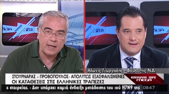 στη συγχώνευση Εθνικής-Eurobank. Ο κ. Οικονομέας "κατηγόρησε" τον κ. Γεωργιάδη για αλλαγή ρότας του κυβερνώντος κόμματος, με τον βουλευτή της Νέας Δημοκρατίας να απαντά «άσε τις τζιριτζάτζουλες Γιωργάκη για την τηλεθέαση, όχι σ' εμένα».