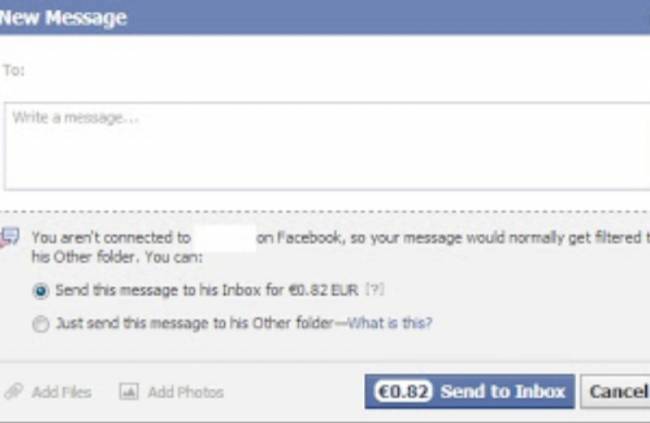 Το είχαμε ακούσει όμως δεν περιμέναμε να γίνει τόσο νωρίς. Όποιος προσπαθήσει να στείλει μήνυμα σε κάποιον άλλον χρήστη τον οποίον δεν έχει φίλο θα πρέπει να πληρώσει 0,82 cents!
